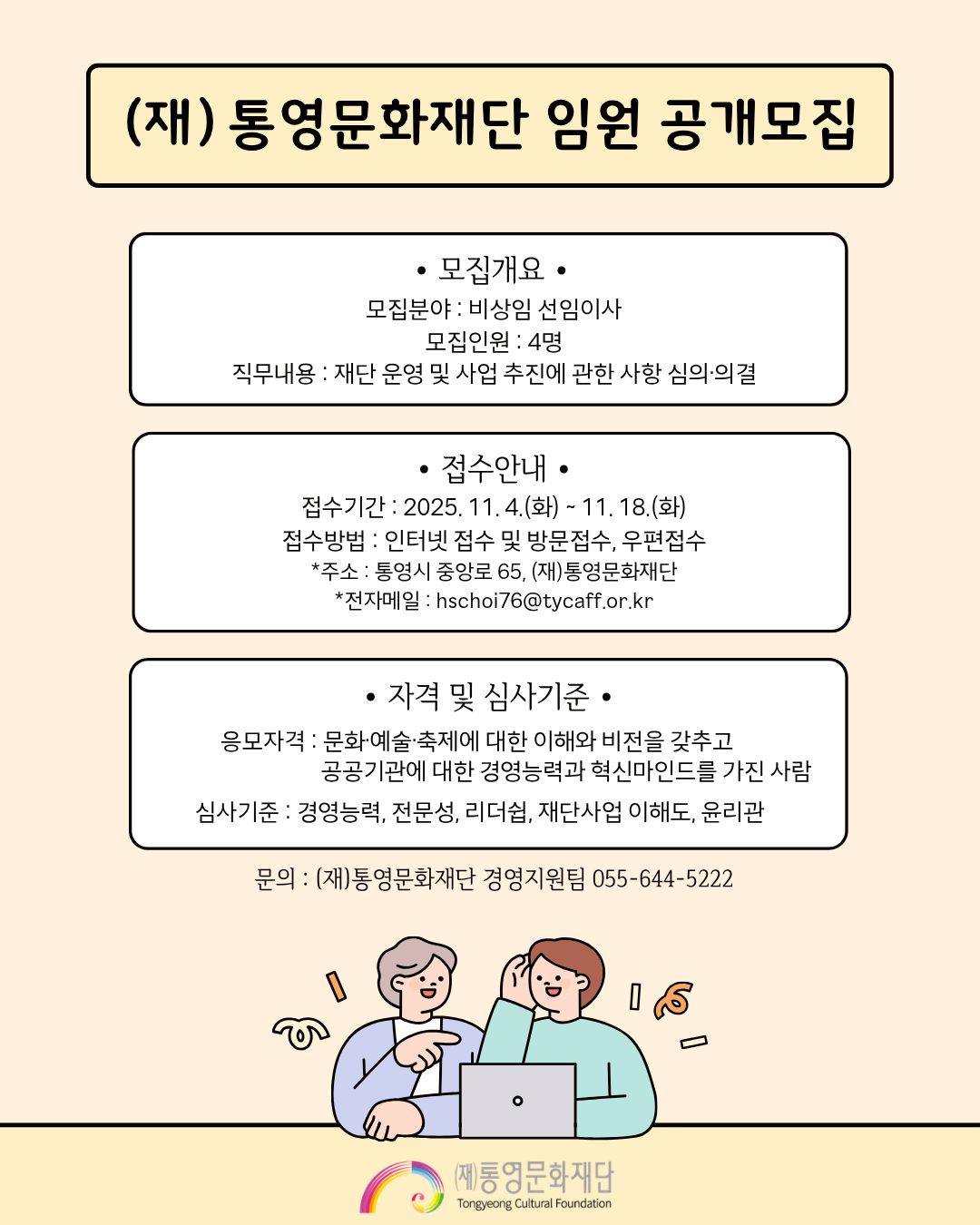 - [공고 제2025-137호] (재)통영문화재단 임원 공개모집 재공고2025-11-04
