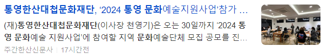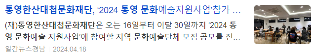 재)통영한산대첩문화재단(이사장 천영기)은 오는 30일까지 ‘2024 통영 문화예술 지원사업’에 참여할 지역 문화예술단체 모집 공모를 진행한다.