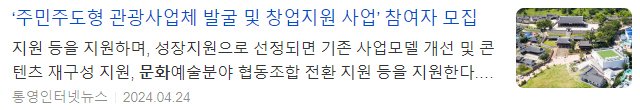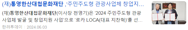 한편, ‘주민주도형 관광사업체 발굴 및 창업지원 사업’을 통해 2021년부터 2023년까지 4개 사업체를 발굴하여 통영 삼도수군통제영의 콘텐츠로 지역축제 또는 행사, 공모사업 등에 참여하여 활동 중이다.
