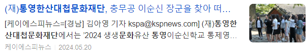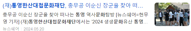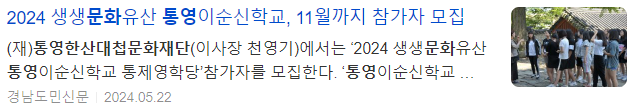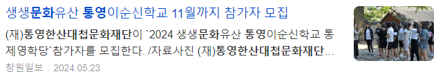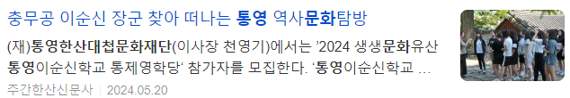 (재)통영한산대첩문화재단에서는 ’2024 생생문화유산 통영이순신학교 통제영학당‘ 참가자를 모집한다.