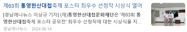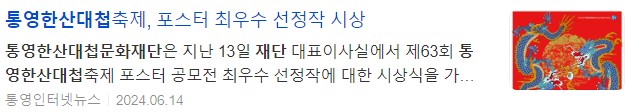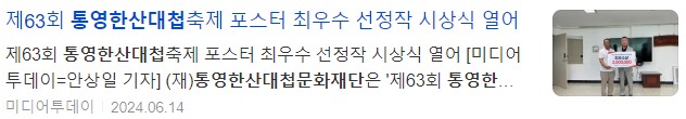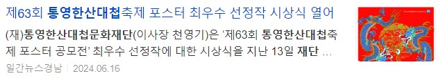 한편, 제63회를 맞이하는 통영한산대첩축제는 '쌍룡의 비상; 구국의 통영바다'를 주제로 오는 8월 9일부터 8월 14일까지 통영 문화마당(강구안) 및 한산대첩광장 등 통영시 일원에서 펼쳐진다.