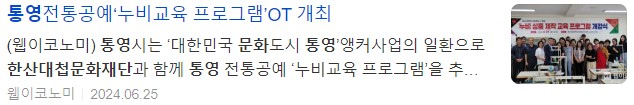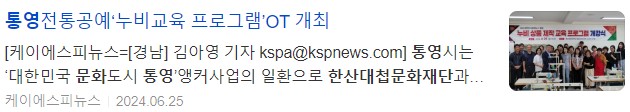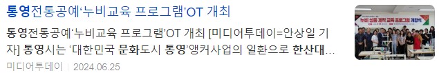 박행오 문화예술과장은 “이 교육을 통해 통영 전통공예를 많은 분들에게 알릴 수 있는 기회가 되면 좋겠다”며 “열심히 참석하셔서 좋은 결과물로 향후 있을 대한민국 문화도시 최종 지정에 보탬이 되어 주시길 당부 드린다”고 전했다.