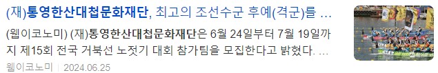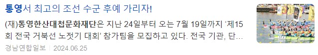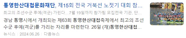 (재)통영한산대첩문화재단(이사장 천영기)은 오는 7월 19일까지 제15회 전국 거북선 노젓기 대회 참가팀을 모집한다.