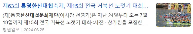 한편, 올해 제63회 통영한산대첩축제는 8월 9일부터 14일까지 통영 한산대첩광장, 강구안, 내죽도 공원, 무전대로 등 통영시 전역에서 펼쳐지게 된다.