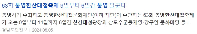 통영시가 주최하고 통영한산대첩문화재단(이하 재단)이 주관하는 63회 통영한산대첩축제가 오는 9일부터 14일까지 6일간 한산대첩광장과 삼도수군통제영·강구안 문화마당 등지에서 열린다.