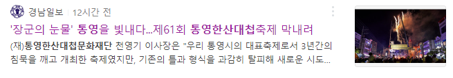 [경남일보] ‘장군의 눈물’ 통영을 빛내다...제61회 통영한산대첩축제 막내려