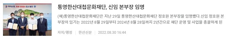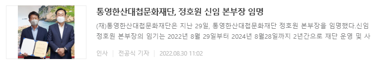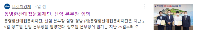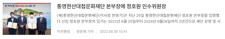 | 통영한산대첩문화재단, 신임 본부장 임명 | ||