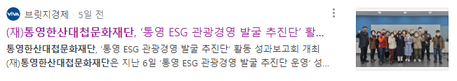 (재)통영한산대첩문화재단(이사장 천영기)은 지난 6일 ‘통영 ESG 관광경영 발굴 추진단 운영’ 성과보고회를 가졌다고 밝혔다.