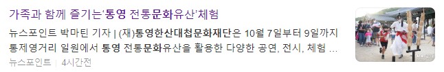 | (재)통영한산대첩문화재단은 10월 7일부터 9일까지 통제영거리 일원에서 통영 전통문화유산을 활용한 다양한 공연, 전시, 체험 프로그램 등을 진행한다고 밝혔다.