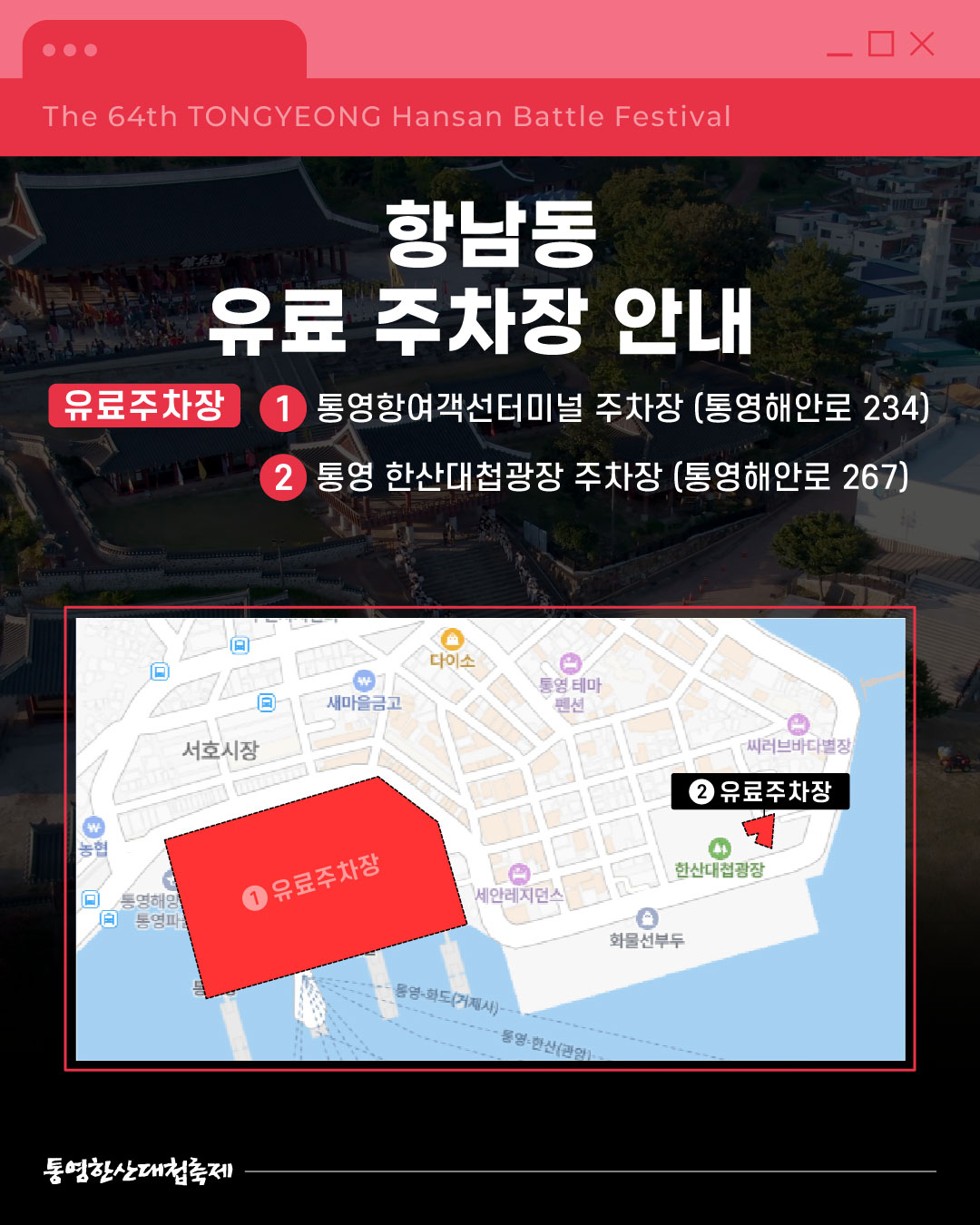 | [안내] 제64회 통영한산대첩축제 임시주차장 안내 | ||