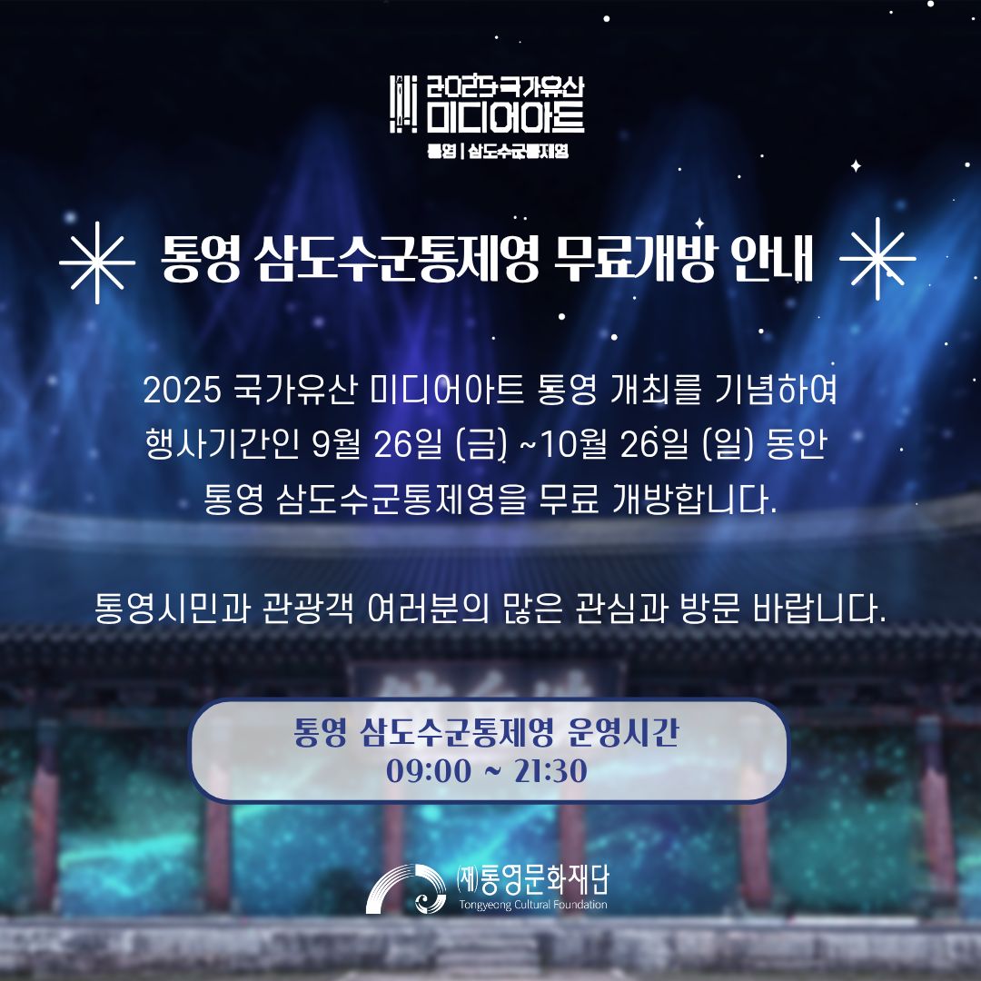 | [안내] 2025 국가유산 미디어아트 통영 삼도수군통제영 행사기간 무료개방 안내 | ||