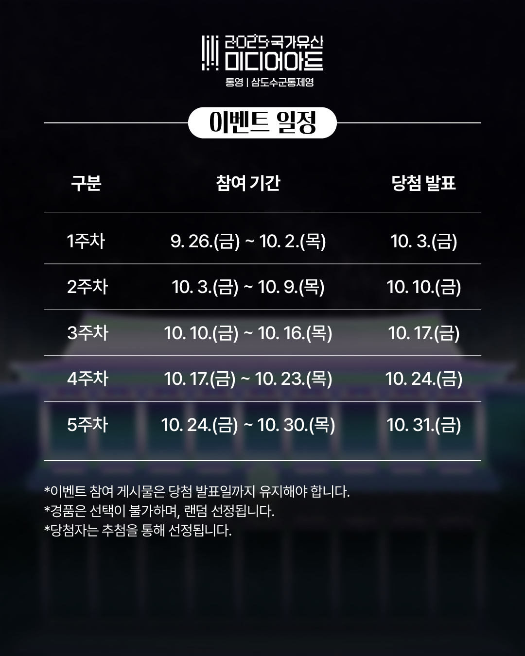 | [안내] 2025 국가유산 미디어아트 통영 삼도수군통제영 관람 이벤트 안내 | ||