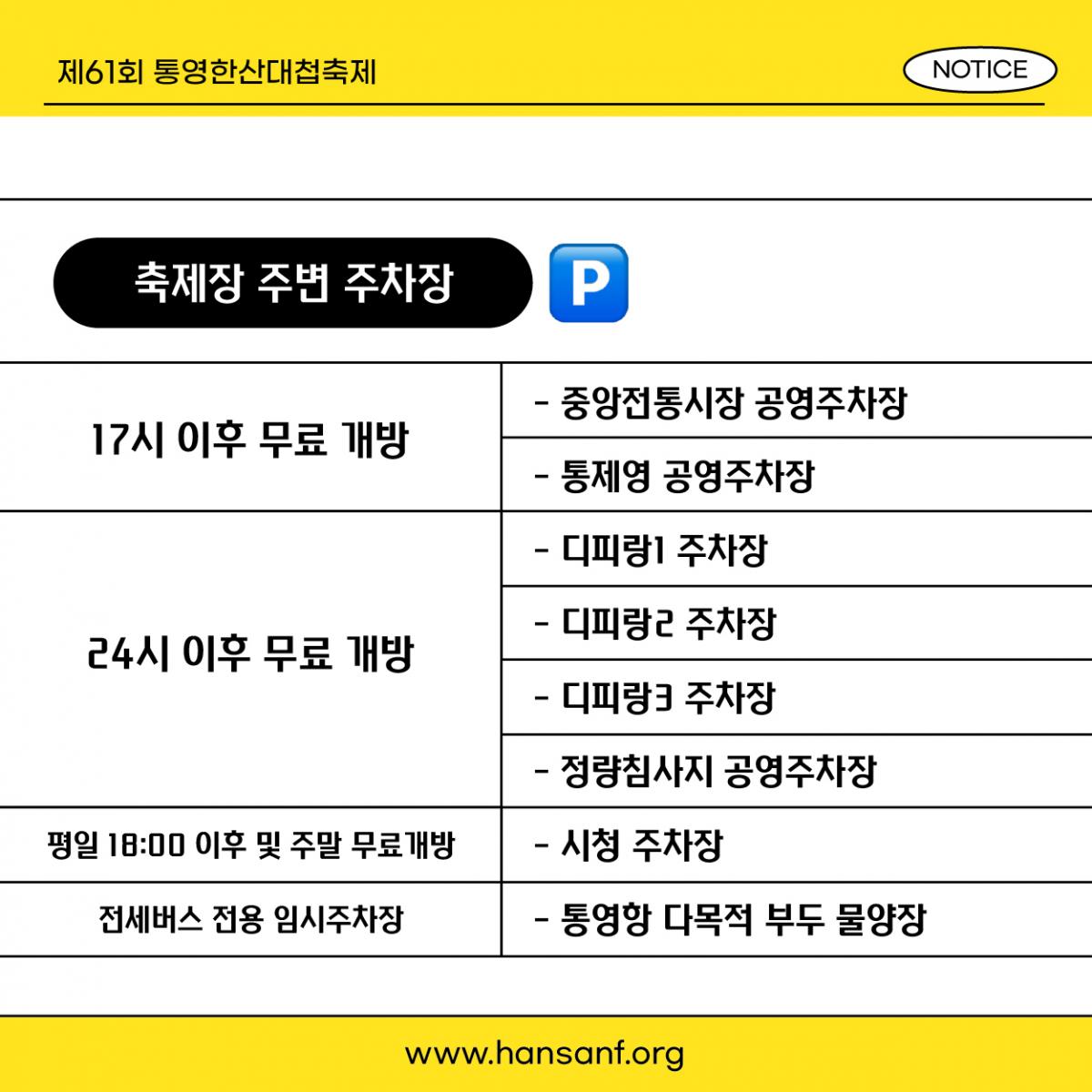 | [안내] 제61회 통영한산대첩축제 기간 개방주차장 안내 | ||