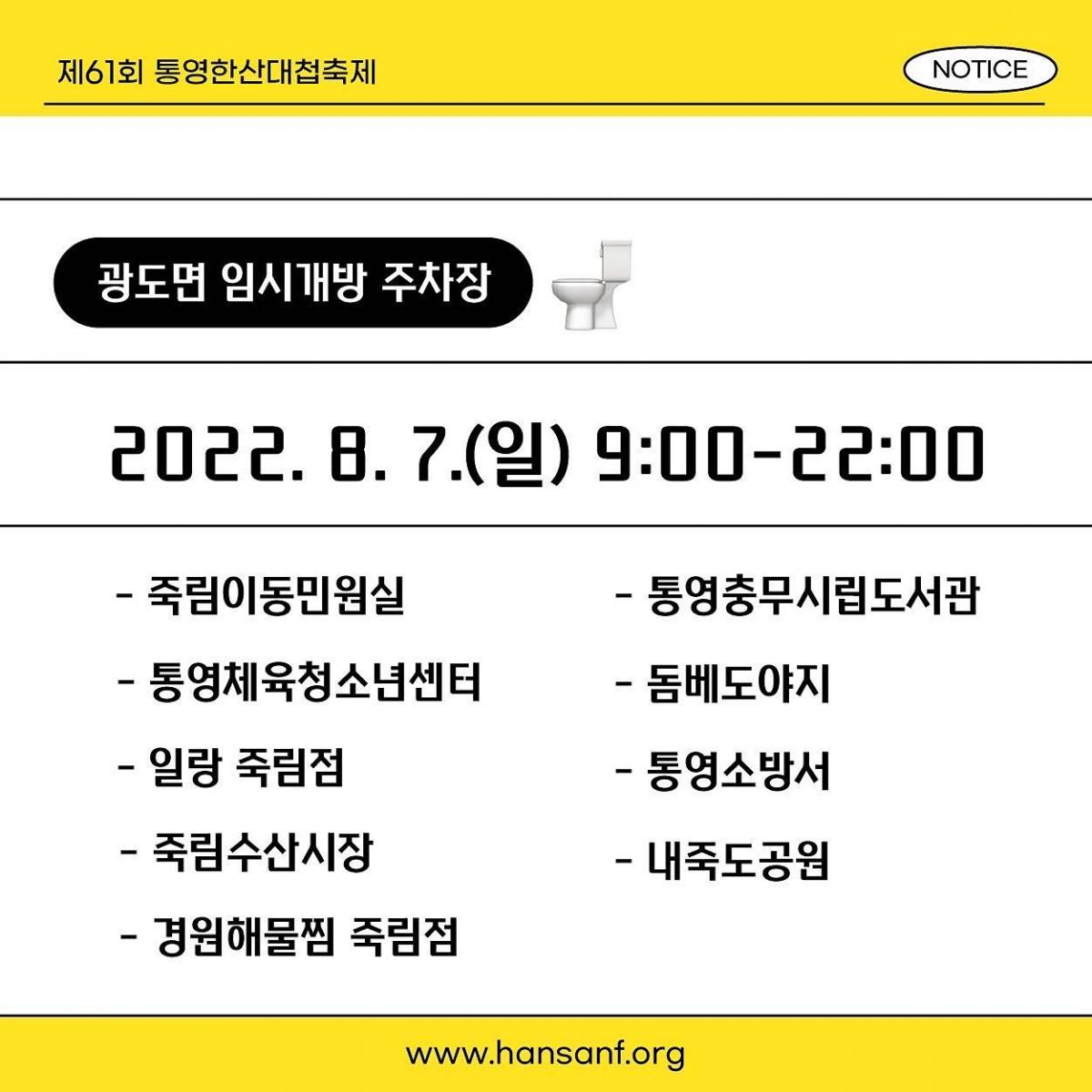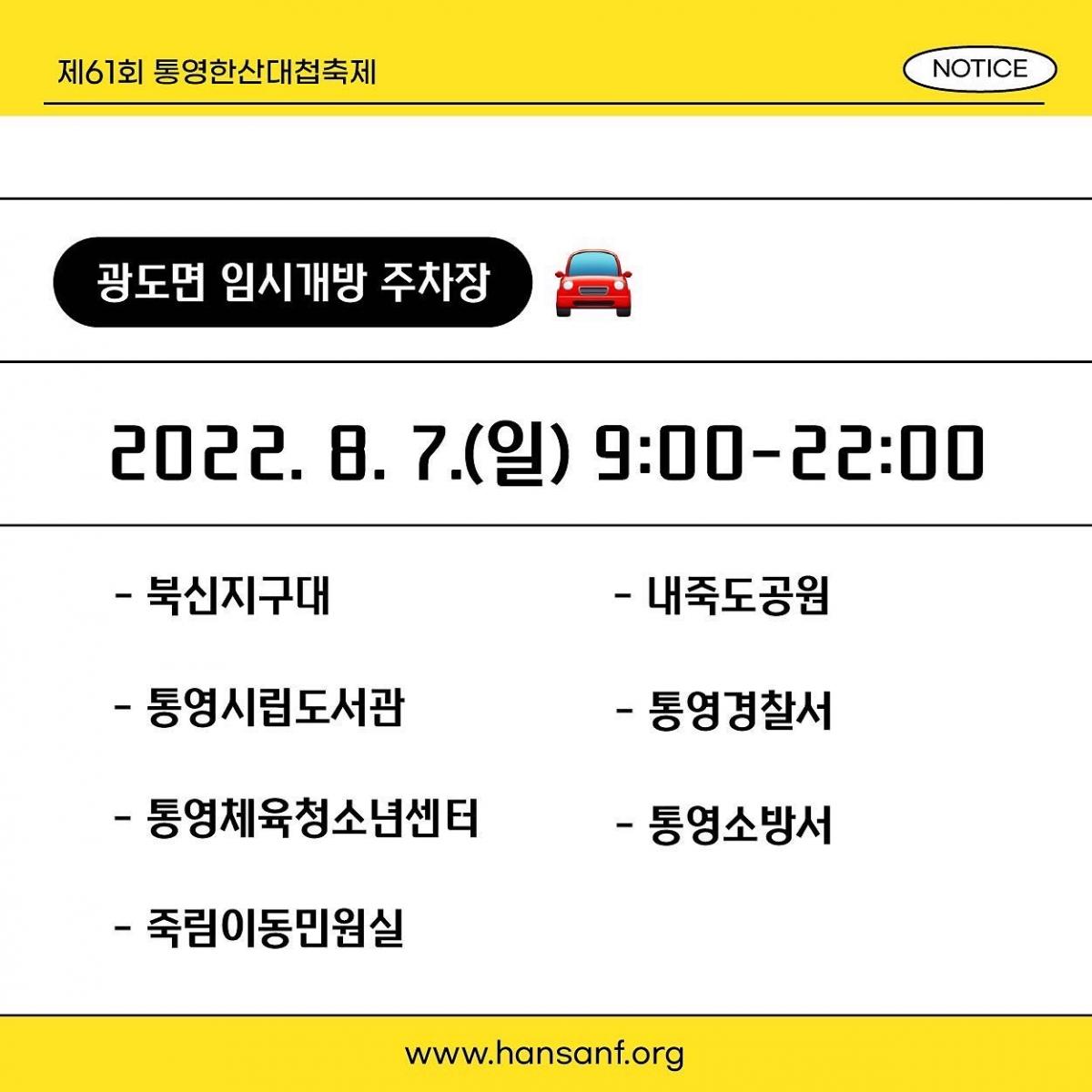 [안내] 제61회 통영한산대첩축제 기간 개방주차장 안내