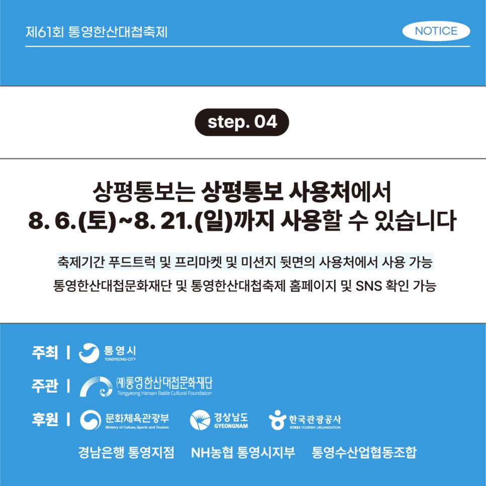 사용처 : 축제기간 푸드트럭 및 프리마켓 그외 상점들은 홈페이지 및 SNS에 게시될 예정 |