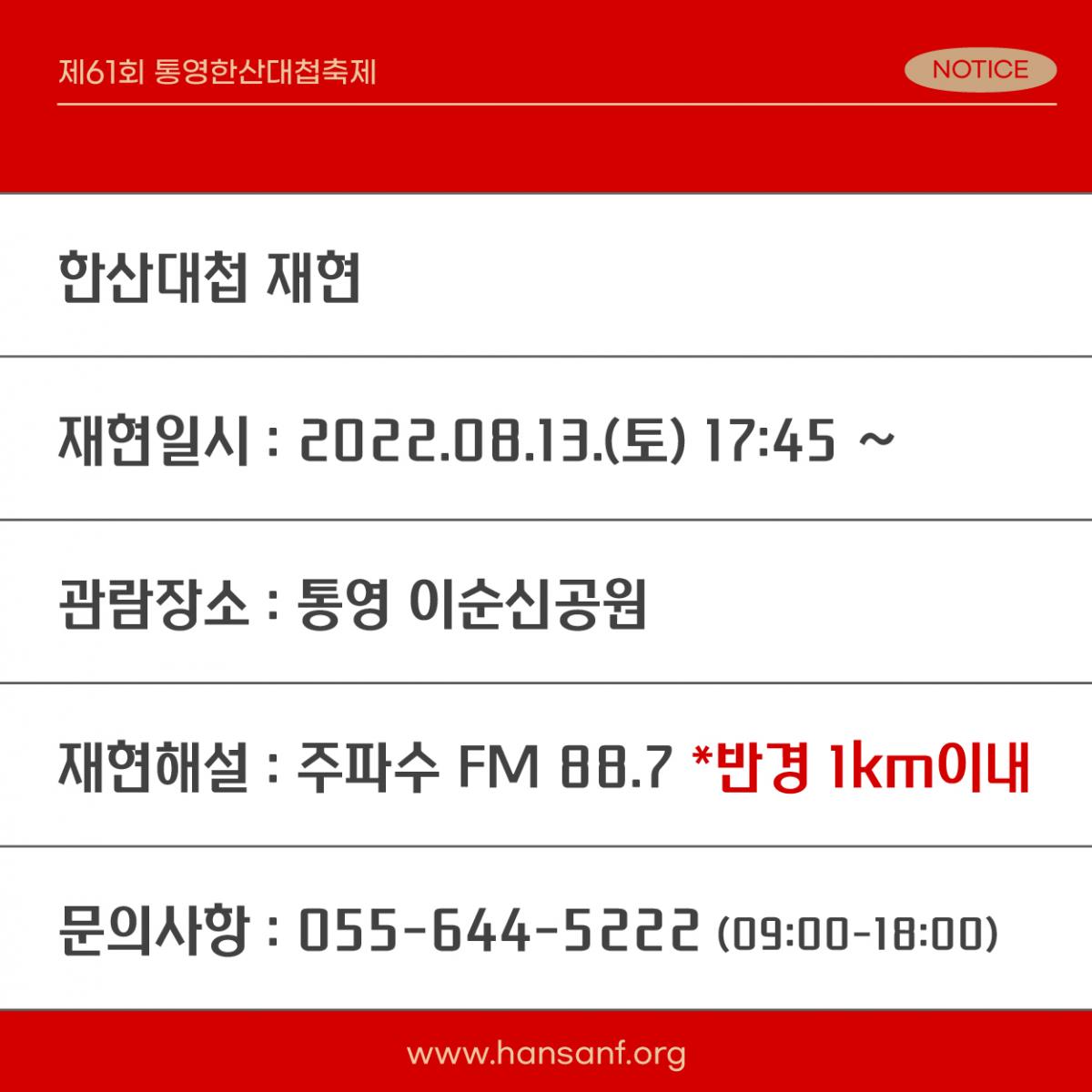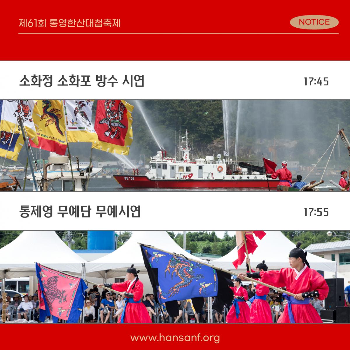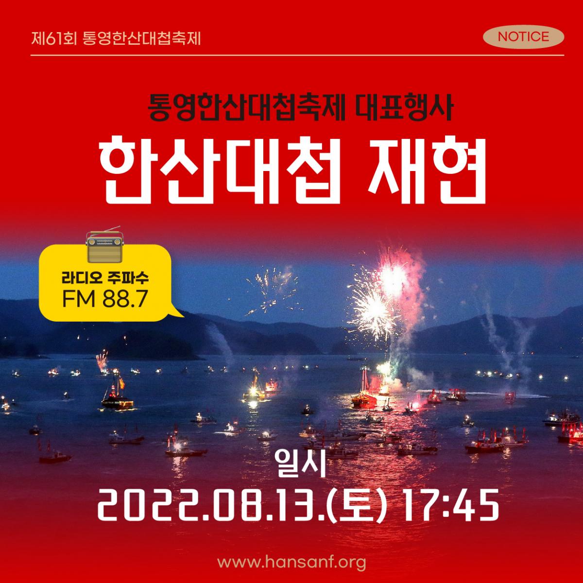 ![]() #통영한산대첩축제 ✨한산대첩 재현✨ 통영한산대첩축제의 대표 행사 중 많은 분들의 관심과 사랑을 받는 바로 한산대첩 재현 프로그램 이번 영화 '한산: 용의 출현'의 학익진 전법을 실제로 재현하는 모습을 볼 수 있다니 3년을 참고 드디어 진행합니다 ✔ 재현일시 : 2022. 8.13.(토) 17:45 ~ ✔ 관람장소 : 통영 이순신공원 ✔ 재현해설 : 주파수 FM 88.7 (반경 1km이내) *재현 해설은 라디오 주파수를 맞추시면 들을 수 있어요! ![]() ![]() ![]() ![]() ![]() |