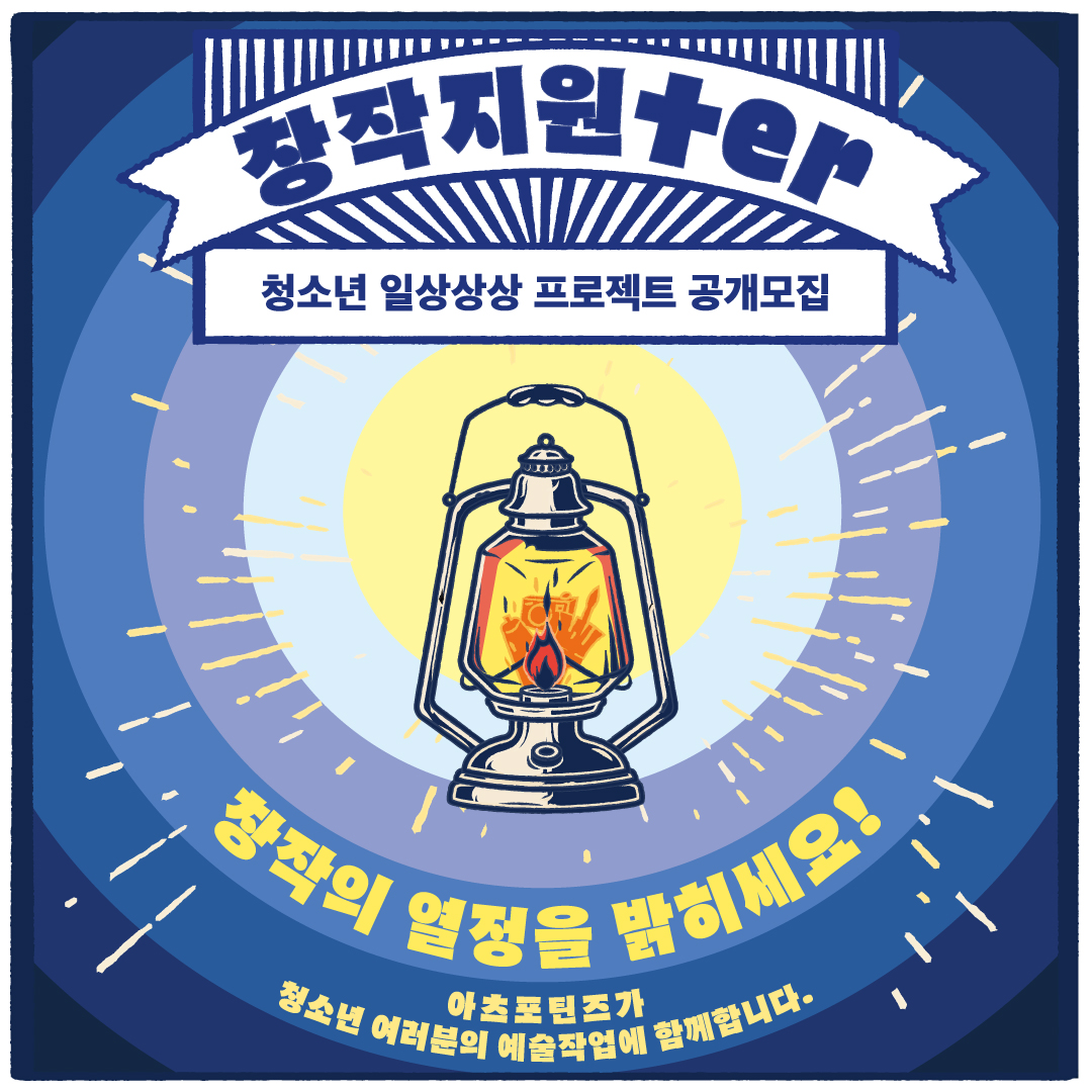 2022 청소년 일상상상 프로젝트 ‘창작지원+er’ ![]() 일상과 예술이 만날 때, 사회가 말하는 ‘쓸데없는 짓’이 청소년의 삶을 보다 아름답게 만드는 ‘쓸모있는 경험’으로 자라날 수 있다는 철학을 바탕 <2022 청소년일상상상프로젝트 ‘창작지원+er’>는 청소년의 자기 주도 예술 창작 프로젝트에 대해 기획부터 실행까지 전 단계를 지원하고자 합니다.
