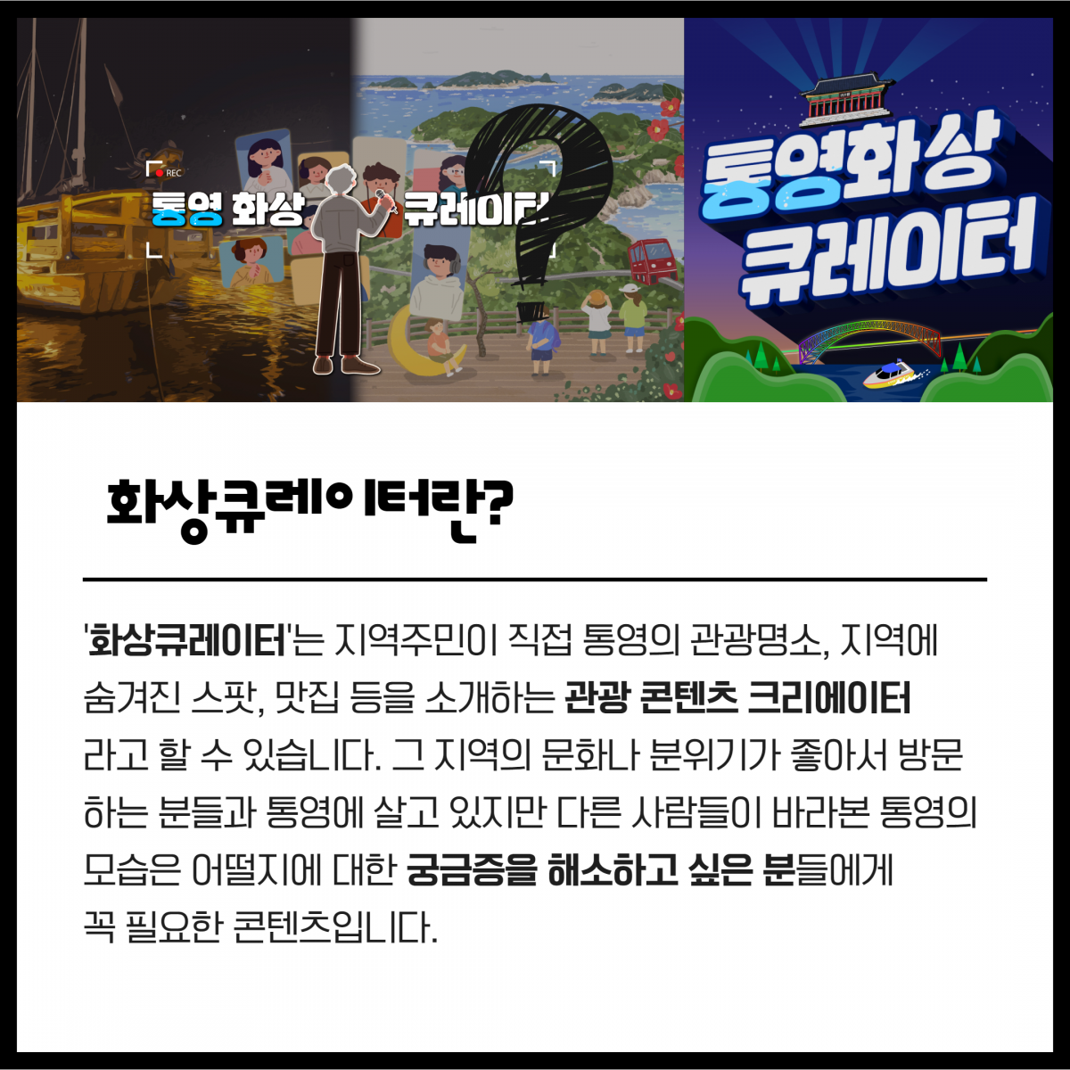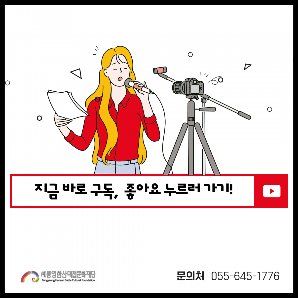 통영화상큐레이터 유튜브 구독! 좋아요!누르고 2만원 받자! ![]() ![]() ![]() ![]() 통영의 숨겨진 컨텐츠를 직접 찾아 소개하는 관광 콘텐츠 크리에이터인 '통영화상큐레이터' 유튜브 채널이 오픈되어 이벤트를 준비했습니다! 이벤트기간 : 2022.12.16. ~ 12. 21. 13:00 이벤트상품 - 스타벅스 2만원 쿠폰 20명 - 문화상품권 2만원 20명 네이버폼에 구독 인증샷을 올려주세요! https://url.kr/fw7sug 문의사항 통영한산대첩문화재단 문화사업팀 070-8680-0686 |