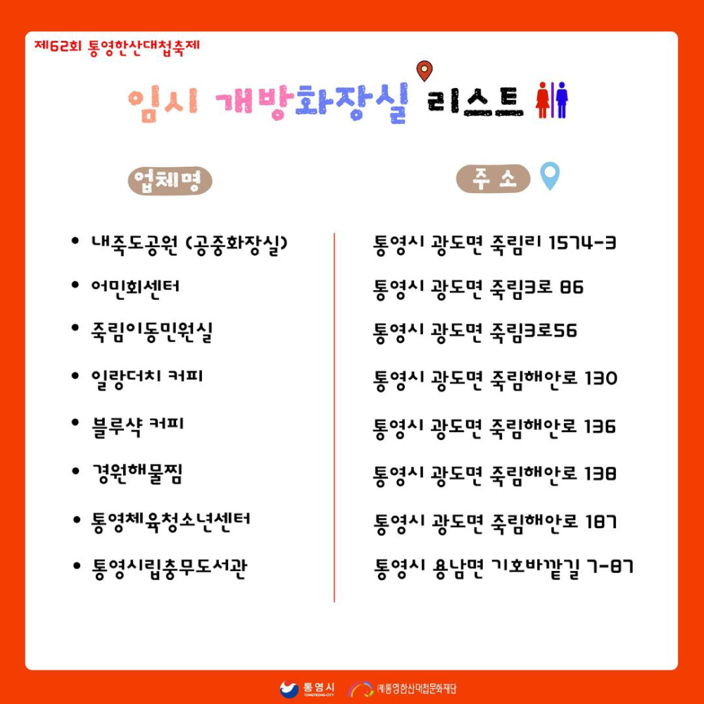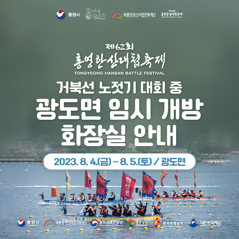 [축제]제62회 통영한산대첩축제 거북선 노젓기대회 광도면 임시 개방 화장실 안내