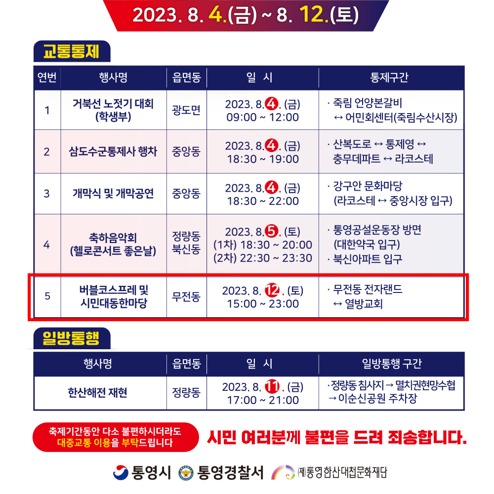 [축제]제62회 통영한산대첩축제 교통통제 안내