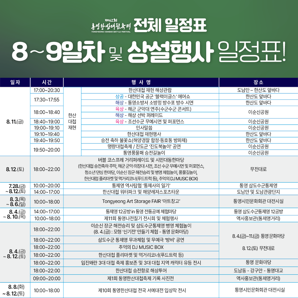 [축제]제62회 통영한산대첩축제 8월4일 일정표
