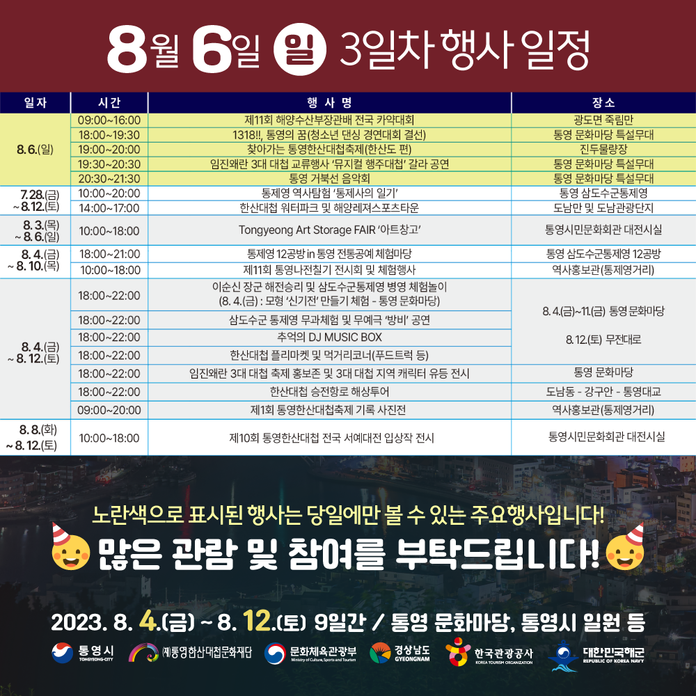 [축제]제62회 통영한산대첩축제 8월6일 일정표