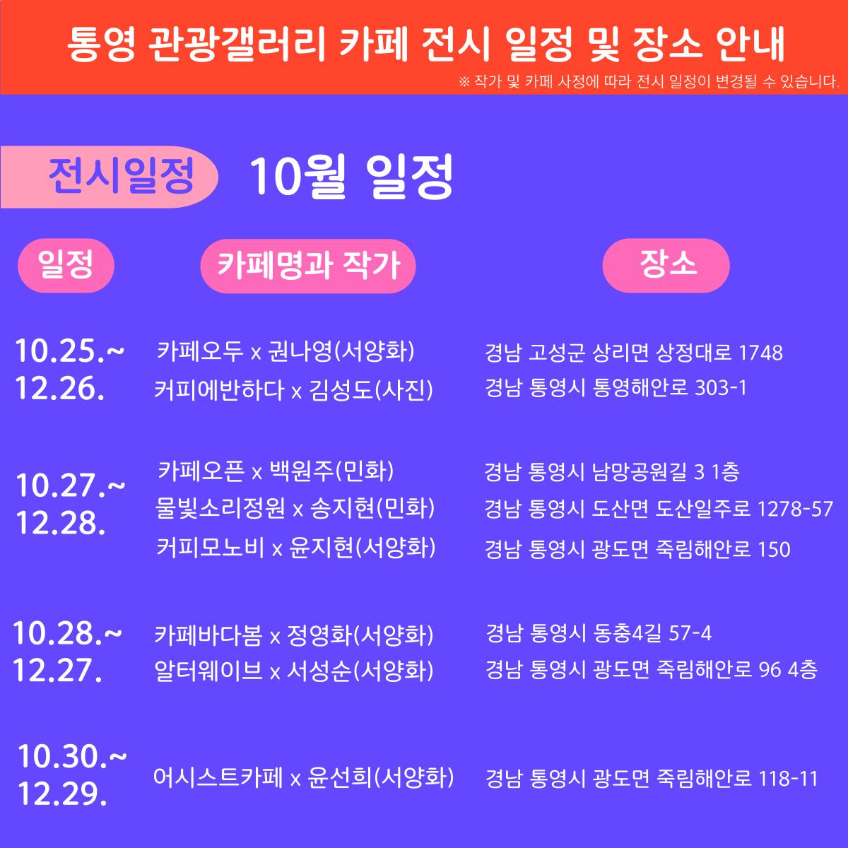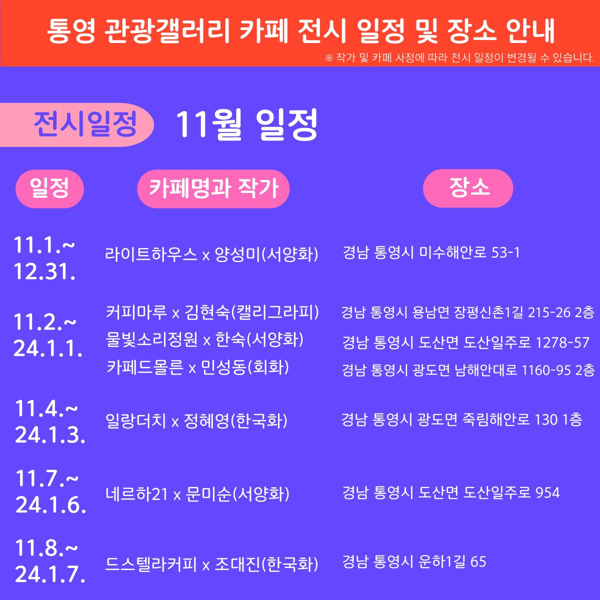 [통영DMO]2023 통영 관광갤러리 카페 전시 일정 및 장소 안내 | ||