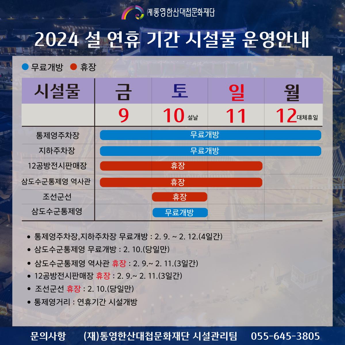 [안내]2024 설 연휴 삼도수군통제영 시설물 운영안내