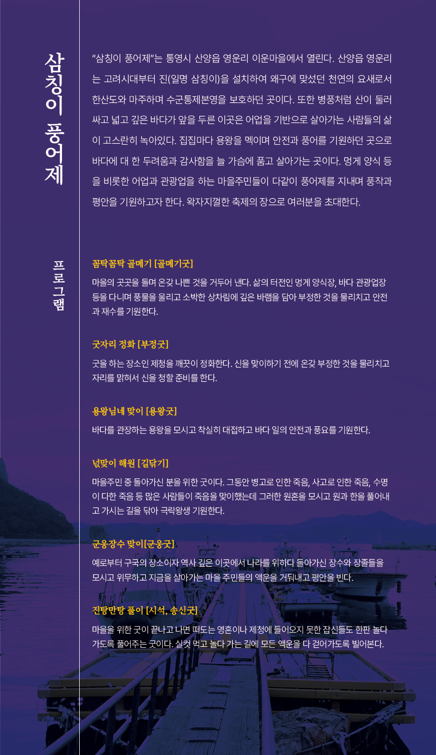 | [홍보]2024 시 · 도 문화예술 기획지원사업 남해안섬길굿 프로젝트 삼칭이 풍어제 행사 안내 | ||