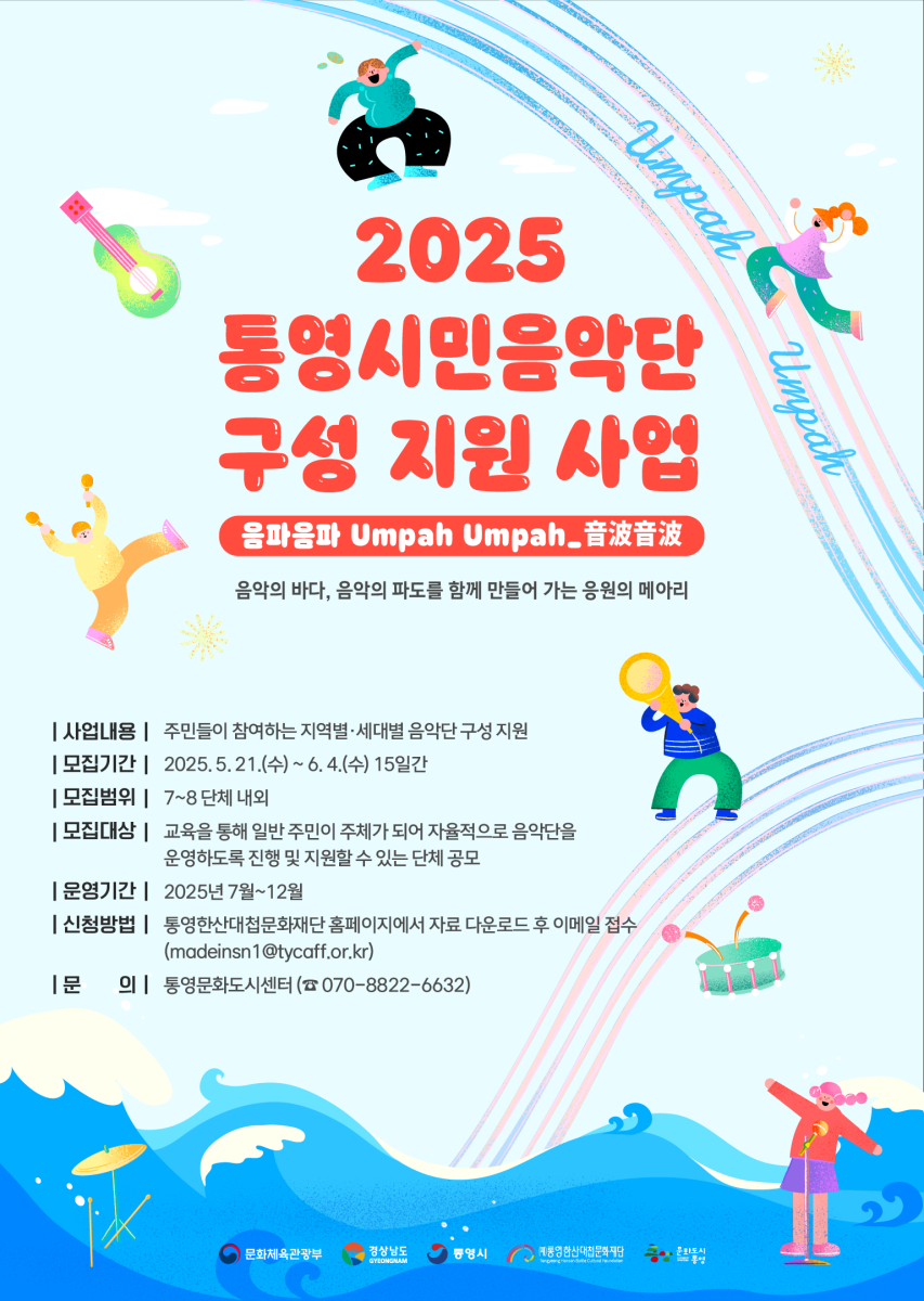 | [공고 제2025-34호] 2025 통영시민음악단 구성 지원사업‘음파음파 Umpah Umpah-音波音波’ 공모 | ||