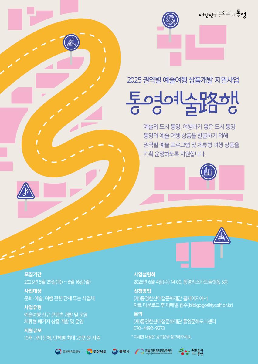 | [공고 제2025-35호] 2025 권역별 예술여행 상품개발 지원사업 '통영예술路행' 공모 | ||