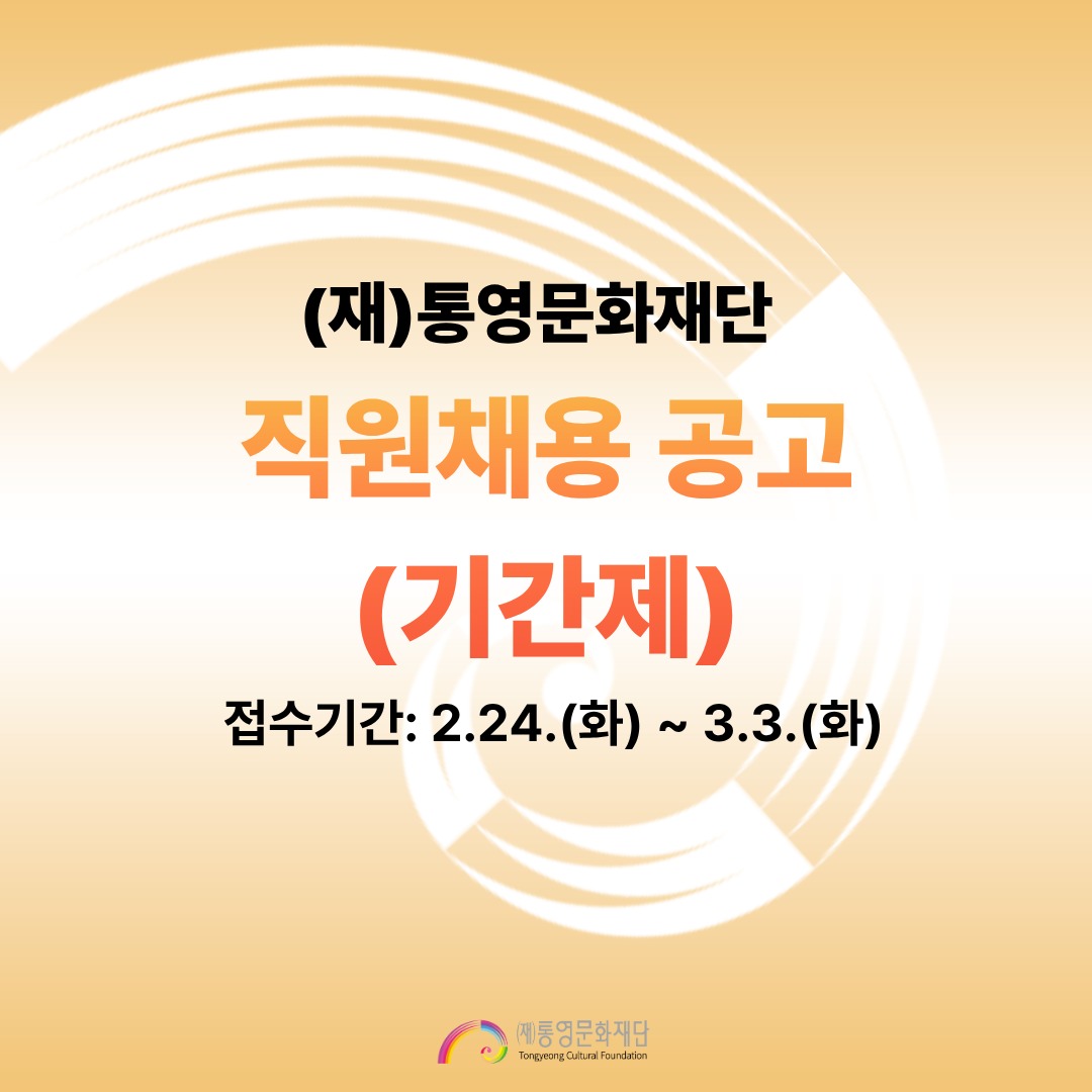 - [공고 제2026-14호] (재)통영문화재단 직원 채용 공고2026-02-19