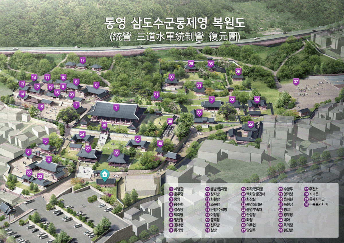 관아시설(세병관, 지과문, 망일루 등), 12공방, 주전소 및 기타시설