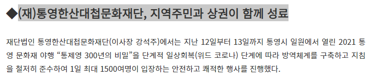 [쿠키뉴스] (재)통영한산대첩문화재단, 지역주민과 상권이 함께 성료