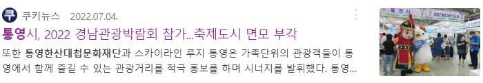 [쿠키뉴스] 통영시, 2022 경남관광박람회 참가...축제도시 면모 부각