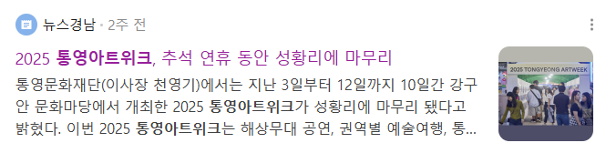 | 2025 통영아트위크, 추석 연휴 동안 성황리에 마무리 | ||