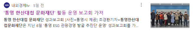 (재)통영한산대첩문화재단(이사장 천영기)은 지난 6일 ‘통영 ESG 관광경영 발굴 추진단 운영’ 성과보고회를 가졌다고 밝혔다.