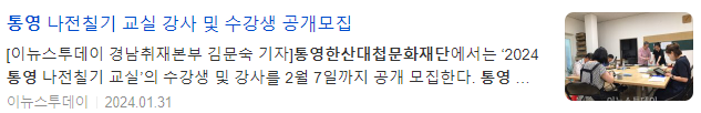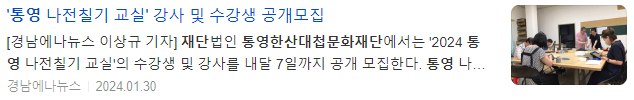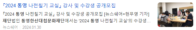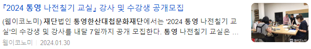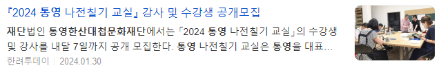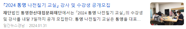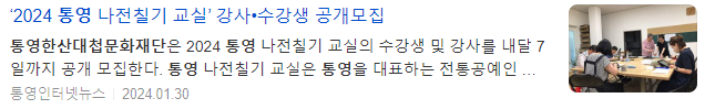 통영한산대첩문화재단에서는 ‘2024 통영 나전칠기 교실’의 수강생 및 강사를 2월 7일까지 공개 모집한다.