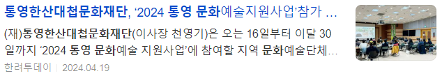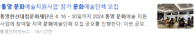 재)통영한산대첩문화재단(이사장 천영기)은 오는 30일까지 ‘2024 통영 문화예술 지원사업’에 참여할 지역 문화예술단체 모집 공모를 진행한다.