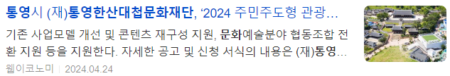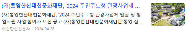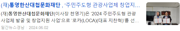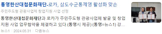 한편, ‘주민주도형 관광사업체 발굴 및 창업지원 사업’을 통해 2021년부터 2023년까지 4개 사업체를 발굴하여 통영 삼도수군통제영의 콘텐츠로 지역축제 또는 행사, 공모사업 등에 참여하여 활동 중이다.