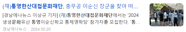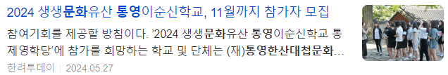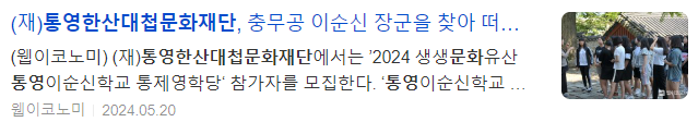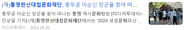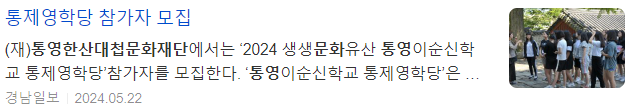 (재)통영한산대첩문화재단에서는 ’2024 생생문화유산 통영이순신학교 통제영학당‘ 참가자를 모집한다.