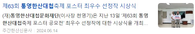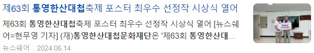 한편, 제63회를 맞이하는 통영한산대첩축제는 '쌍룡의 비상; 구국의 통영바다'를 주제로 오는 8월 9일부터 8월 14일까지 통영 문화마당(강구안) 및 한산대첩광장 등 통영시 일원에서 펼쳐진다.