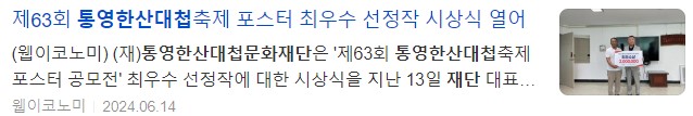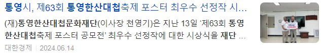 (재)통영한산대첩문화재단은 '제63회 통영한산대첩축제 포스터 공모전' 최우수 선정작에 대한 시상식을 지난 13일 재단 대표이사실에서 가졌다.