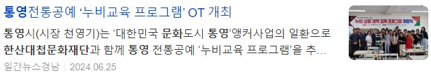 통영시(시장 천영기)는 ‘대한민국 문화도시 통영’앵커사업의 일환으로 한산대첩문화재단과 함께 통영 전통공예 ‘누비교육 프로그램’을 추진하고 있으며 지난 24일 16시에 첫 강의와 함께 OT를 진행했다.