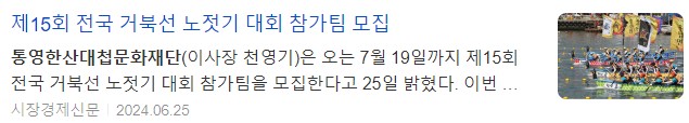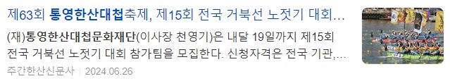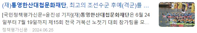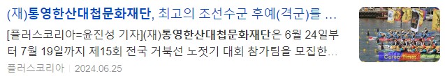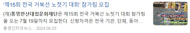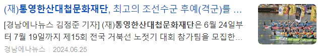(재)통영한산대첩문화재단(이사장 천영기)은 오는 7월 19일까지 제15회 전국 거북선 노젓기 대회 참가팀을 모집한다.
