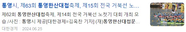 한편, 올해 제63회 통영한산대첩축제는 8월 9일부터 14일까지 통영 한산대첩광장, 강구안, 내죽도 공원, 무전대로 등 통영시 전역에서 펼쳐지게 된다.