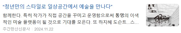 객실 앞 업무공간에서는 예술작가와 음악공연이 어우러지는 아트토크가, 작가의 방과 팝업 공간, 상품 등을 소개하는 도슨트 투어가 2일간 2회씩 진행된다.